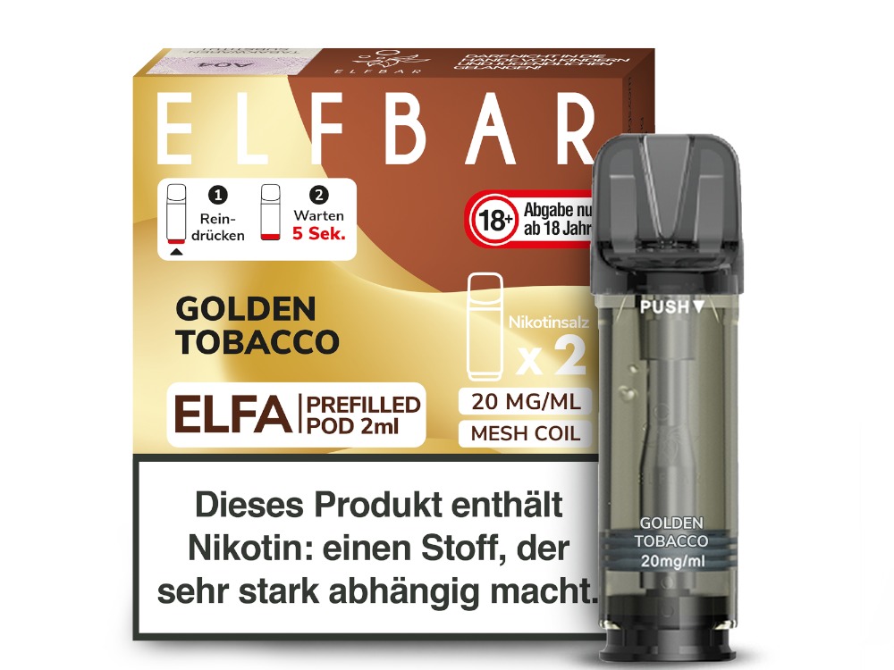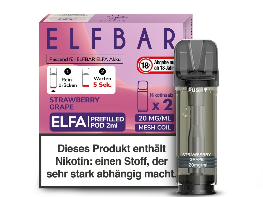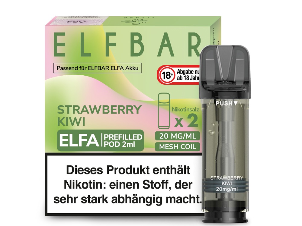 Die Elfbar Elfa Prefilled Pods sind mit dem Elfbar Elfa Akku sowie dem Lost Mary Tappo Akku und der Elfbar Elfa Turbo kompatibel. Sie erhalten pro bestellter Packung und Sorte jeweils zwei Elfa Pods von Elfbar. Sie können aus mehr als 30 verschiedenen Geschmacksrichtungen wählen. Die Pods sind mit einer Gesamtmenge von 2 ml Nikotinsalz Liquid gefüllt und können nicht wieder befüllt werden. Sie können diese Pods mit 0 mg/ml oder 20 mg/ml Nikotin erhalten. In den Pods ist ein Mesh Coil fest verbaut, der nicht ausgetauscht werden kann. Bitte tauschen Sie den gesamten Pod aus, wenn dieser leer ist oder Sie eine Veränderung des Liquidgeschmacks feststellen.