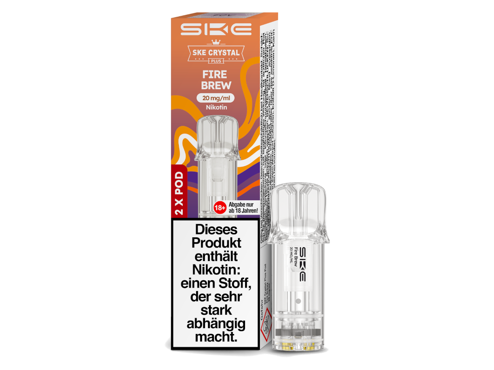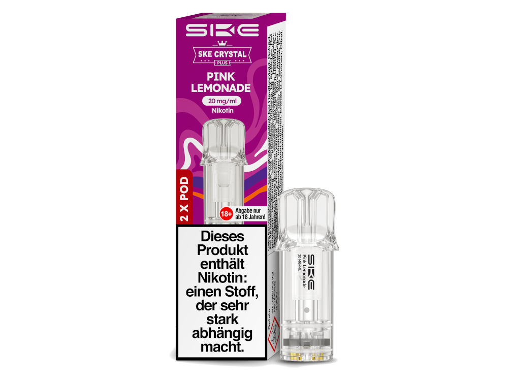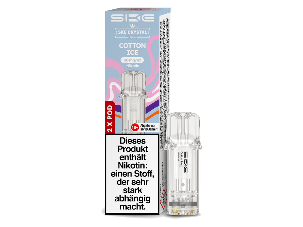 Der Crystal Plus Pod von SKE ist eine Cartridge, die bereits mit Liquid vorbefüllt ist und speziell für die Verwendung mit dem Crystal Plus Akku entwickelt wurde. Diese auswechselbare Cartridge bietet ein Tankvolumen von 2 Millilitern und ist mit Nikotinsalzliquid, das einen Gehalt von 20 mg/ml aufweist, vorbefüllt. Sie ist in 15 verschiedenen Geschmacksrichtungen erhältlich. Die SKE Crystal Plus Cartridge verfügt über eine integrierte Coil mit einem Widerstand von 1,1 Ohm, was das moderatere Dampfen mit Zügen vom Mund zur Lunge unterstützt. Abhängig vom individuellen Zugverhalten können mit einer Cartridge bis zu 600 Züge getätigt werden. Die Verbindung des Pods mit dem Gehäuse des Akkus erfolgt einfach durch Zusammenstecken. Es ist wichtig zu beachten, dass die Crystal Plus Cartridge von SKE nicht wiederbefüllbar ist und daher ausgetauscht werden muss, sobald das Liquid im Tank aufgebraucht ist. Um sicherzustellen, dass Sie stets gut versorgt sind, erhalten Sie mit jeder bestellten Verpackungseinheit 2 SKE Crystal Plus Pods in der von Ihnen ausgewählten Geschmacksrichtung.SKE Crystal Plus Leer-Pod